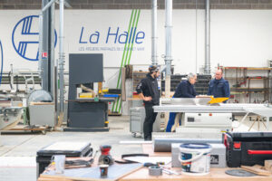 La Halle, première activité pérenne de la Macérienne, est un lieu convivial proposant une offre centrée sur le travail du bois. Ouvert aux amateurs comme aux professionnels, cet espace est équipé de machines et d’outils spécialisés de la conception à la finition : tracé, débit, corroyage, assemblage, finitions, découpe ou prototypage.